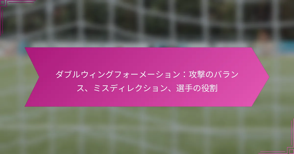 ダブルウイングフォーメーションは、バランスとミスディレクションを重視したサッカーの戦略的な攻撃セットアップで、2人のタイトエンドと2人のウィングバックが特徴です。このフォーメーションは、チームが選手の役割を効果的に分配し、さまざまな守備戦略に適応できる多様な攻撃を生み出し、相手を混乱させることができます。