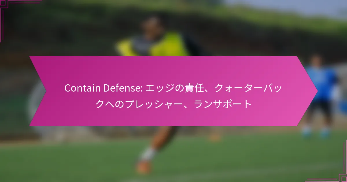 コンテインメントディフェンスにおけるエッジの責任は、攻撃選手、特にクォーターバックやランニングバックがディフェンスの端を利用するのを防ぐことに焦点を当てています。これには、戦略的なポジショニングと効果的なテクニックを用いてコントロールを維持し、大きなプレーを制限することが含まれます。