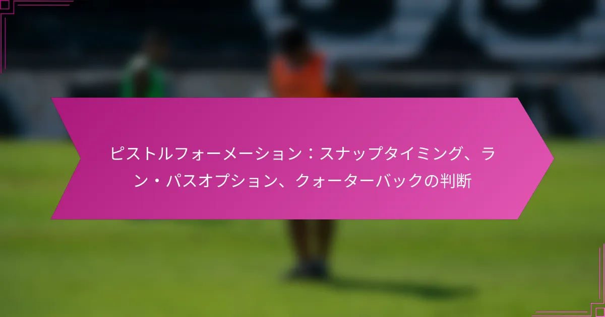 スナップタイミングはピストルフォーメーションにおいて重要であり、プレイの実行に直接影響を与えます。適切なタイミングは、クォーターバックがディフェンスを効果的に読み取り、迅速な判断を下すことを保証し、全体的な攻撃の効率を高めます。